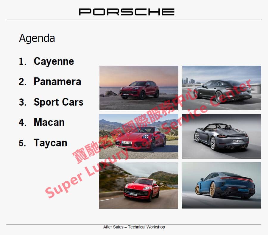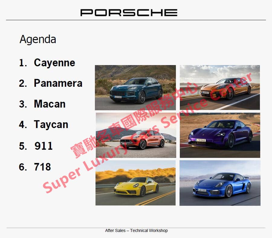 PORSCHE保时捷服务技术研讨会资料内容覆含以下内容: